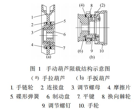 手動葫蘆基本上都采用摩擦打滑的限載原理,當載荷力矩大于摩擦力矩時起升失效,也有一些國外的手扳葫蘆采用超載時手扳力超過限制值導致手柄彎曲的間接形式,但因操作方式不同不適用于手拉葫蘆。