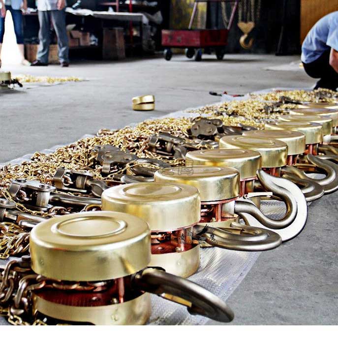 4、防爆手拉葫蘆外形美觀、經(jīng)久耐用。手拉葫蘆及手動(dòng)小車(chē)的手拉鏈條均為不銹鋼材料,其余可能有碰撞摩擦火花的地方均采用無(wú)火花材料制作或包覆。