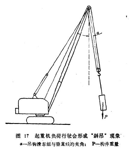 因為起重機負衙行駛時,由于道路不平或慣性原因,構(gòu)件總難免要發(fā)生擺動而使起重機吊鉤滑車組離開垂直線位置,形成“斜吊”,如圖17所示。如果起重機吊著重量為P的構(gòu)件已是滿負荷。則當(dāng)梅件擺動后,實際就是格負荷了。構(gòu)件擺動的夾角a如過大,傾覆力矩增大,起重機就可能翻車。因此,起重機滿負荷時要盡量避免行駛。如需作短距離行駛,只熊將構(gòu)件吊離地面20—30厘米,且要慢行,還必須拉好溜繩,控制構(gòu)件擺動。更多問題解答關(guān)注凌鷹電動葫蘆專業(yè)廠家。