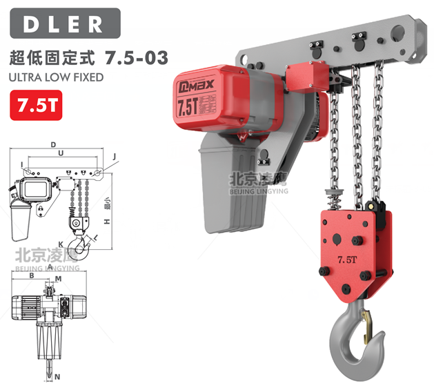 7.5噸DLER環(huán)鏈電動葫蘆超低固定式限位開關(guān):重物吊上吊下都有極限開關(guān)裝置,使電機自動停止,以防止鏈條超出,確保安全。