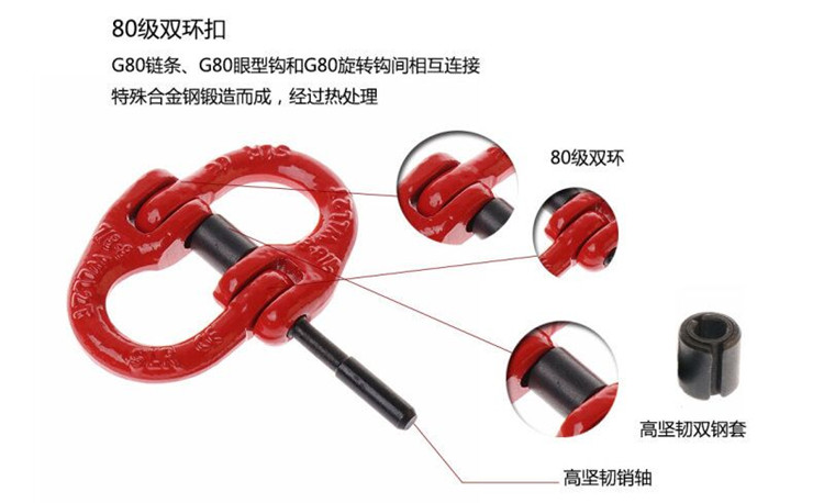 蝴蝶扣/雙環(huán)扣采用優(yōu)質(zhì)碳素結(jié)構(gòu)鋼或合金結(jié)構(gòu)鋼鍛造并進(jìn)行熱處理而成,具有體積小、重量輕、強度高等特點, 最大試驗載荷為額定載荷的2倍,最小破斷載荷為額定載荷的4倍。本產(chǎn)品嚴(yán)格按國家3包執(zhí)行,產(chǎn)品質(zhì)量由中國人民保險公司(PICC)承保,請放心使用。