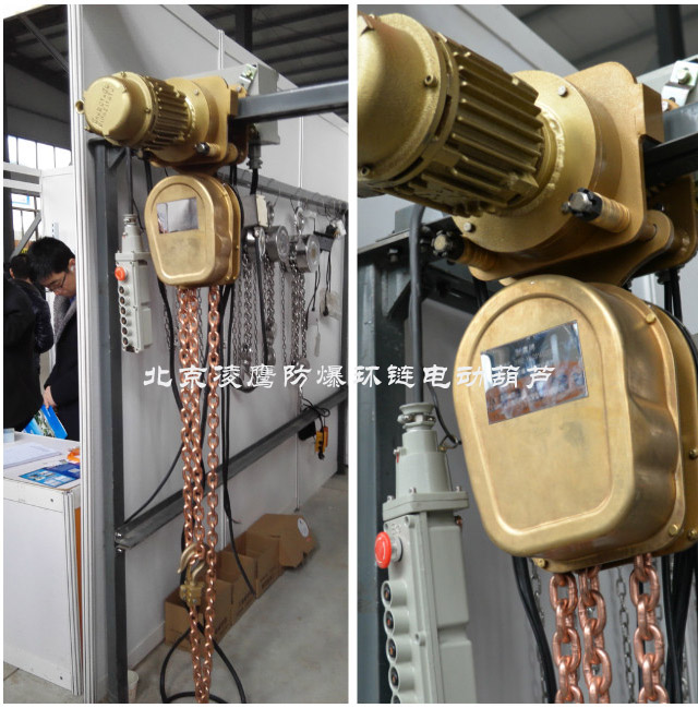防爆環(huán)鏈電動(dòng)葫蘆廣泛應(yīng)用于石油、石化、油站、油庫(kù)、采氣、化工、軍工、電力、礦山、電子、鐵路、等潛在火患和爆炸的危險(xiǎn)環(huán)境中。在作業(yè)中產(chǎn)品相互摩擦撞擊不會(huì)產(chǎn)生機(jī)械火花,在易燃易爆場(chǎng)所不引爆氣體,有效防止火災(zāi)事故,確保國(guó)家財(cái)產(chǎn)和人身安全。
