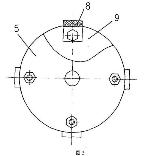該電動葫蘆采用獨特的設計,利用手拉葫蘆和煤電鉆相結合,其手拉葫蘆的手拉轉輪上沒有纏繞搭接手拉鏈,煤電鉆包括機殼和卡裝在煤 電鉆的卡具上的鉆桿,手拉轉輪與鉆桿同軸設置,手拉轉輪朝外的端面朝向煤電鉆,殼體和機殼采用固定架固定相連,手拉轉輪朝外的端面上固定有手拉轉輪法蘭盤,手拉轉輪法蘭盤上均布有多個螺栓孔,每個螺栓孔處采用緊固件分別與一個皮帶條的一端固定相連,每個皮帶條的另一端通過鉆桿法蘭盤上的螺栓孔采用緊固件連接固定在鉆桿法蘭盤上,鉆桿法蘭盤上的螺栓孔位置與手拉轉輪法蘭盤上的螺栓孔位置對應,鉆桿法蘭盤安裝固定在鉆桿的端頭上。在使用時,當需要起吊重物時,可利用煤電鉆的電機帶動鉆桿按照需要的方向旋轉,鉆桿就會通過鉆桿法蘭盤、多個皮帶條8和手拉轉輪法蘭盤帶動手拉葫蘆的手拉轉輪按照需要的方向轉動,從而完成對重物的起吊。由于采用皮帶條這種軟連接設計將煤電鉆的電機產(chǎn)生的扭矩傳遞到手拉葫蘆的手拉轉輪,保證了手拉葫蘆轉動的平穩(wěn)性,再由于煤電鉆的輸出轉速較低,不需要另加減速裝置,故本發(fā)明的利用手拉葫蘆和煤電鉆改造成的電動葫蘆的結構非常緊湊,體積也較小,尤其適宜井下機電硐室起吊、裝卸設備和物件、以及安撤面使用,并可降低工人勞動強度,提高工作效率。