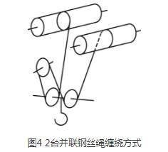 這種方式因結(jié)構(gòu)形式加大,使得對適用場合提出更高要求,不能很好地適應(yīng)空間小、吊鉤覆蓋范圍要求廣的場合。同時由于實際應(yīng)用過程中鋼絲繩內(nèi)應(yīng)力的釋放,在使用一段時間后,會出現(xiàn)鋼絲繩出繩和入繩不能同步,導(dǎo)致亂繩現(xiàn)象。