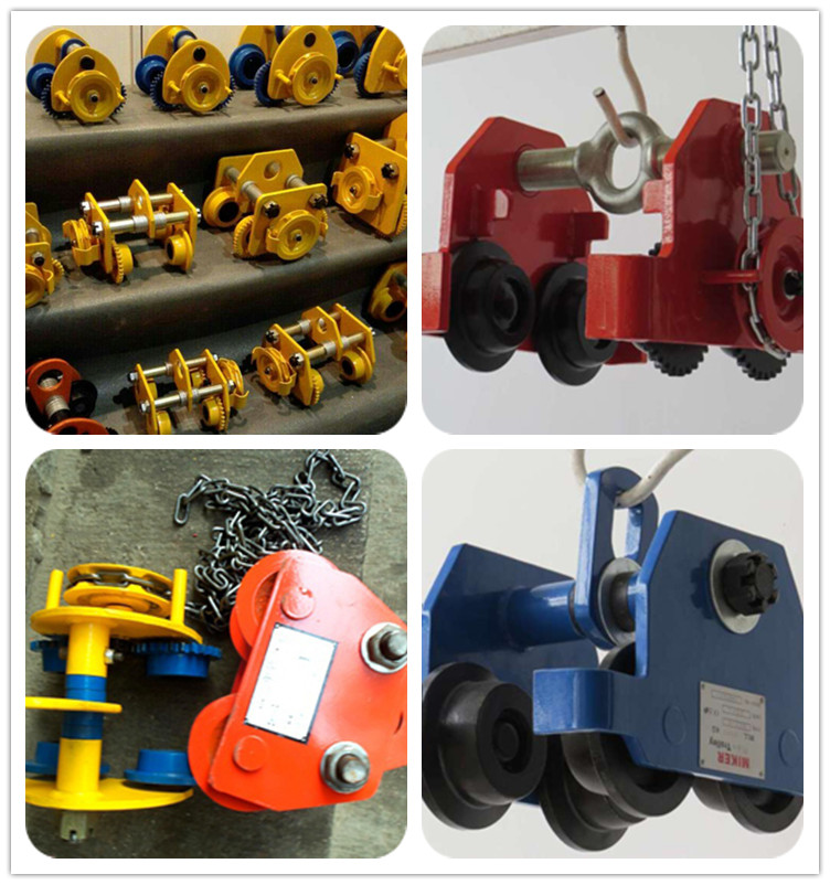 單軌行車用途:手拉單軌行車以手鏈驅(qū)動(dòng),行走于工字鋼的軌道下緣處,配以手拉葫蘆便可組成橋式、單梁或懸臂式起重機(jī)。單軌小車廣泛地適用于工廠、礦山、碼頭、倉(cāng)庫(kù)、建筑工地等,單軌小車用于安裝機(jī)器設(shè)備,吊運(yùn)貨物的場(chǎng)合,單軌小車尤其適用于無(wú)電源地點(diǎn)的作業(yè)。